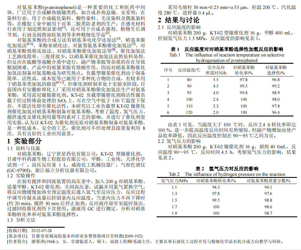 KT_02負載型鎳催化劑用于對硝基苯酚催化加氫
